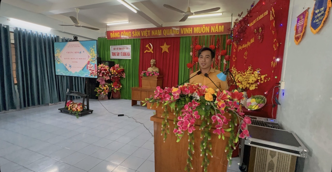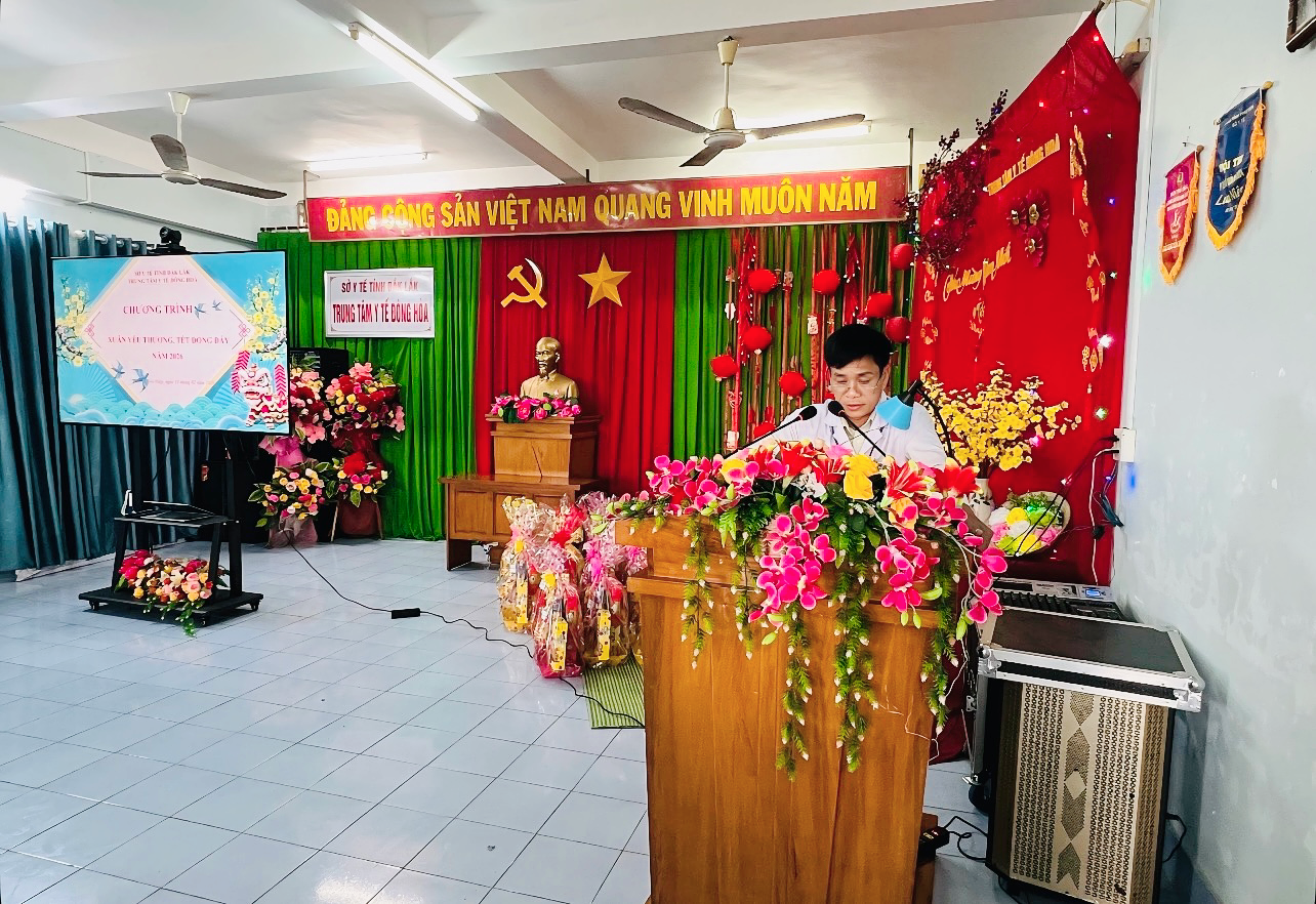 BSCKI. Nguyễn Văn Phất – Giám đốc Trung tâm Y tế Đông Hòa phát biểu, chia sẻ và động viên người bệnh dịp đầu xuân