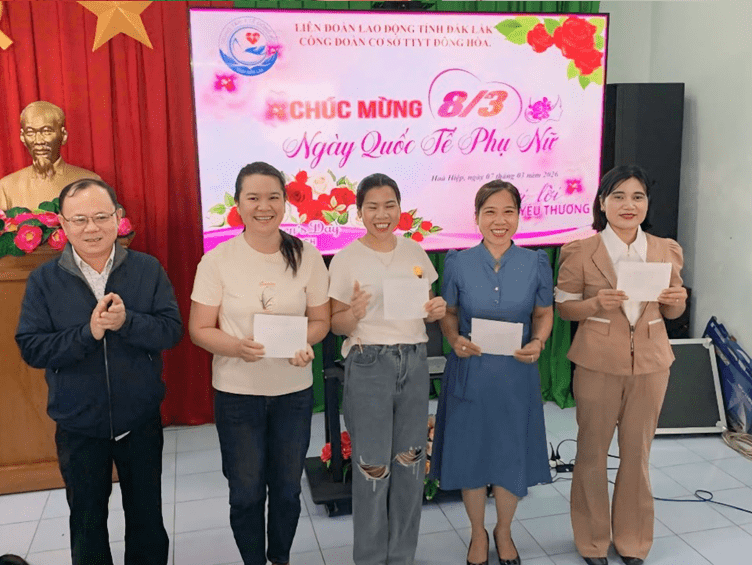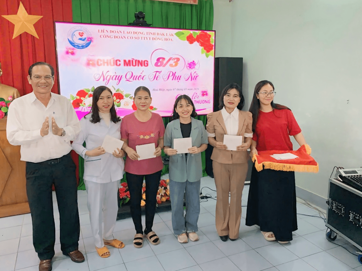 Thực hiện Kế hoạch liên tịch của Công đoàn cơ sở Trung tâm Y tế Đông Hòa về việc tổ chức các hoạt động kỷ niệm 116 năm Ngày Quốc tế Phụ nữ (08/3/1910 – 08/3/2026), 1986 năm Khởi nghĩa Hai Bà Trưng và Ngày Quốc tế Hạnh phúc 20/3. Sáng ngày 07/3/2026, Trung tâm Y tế Đông Hòa đã tổ chức nhiều hoạt động ý nghĩa nhằm tôn vinh vai trò, vị trí của phụ nữ trong gia đình và xã hội.