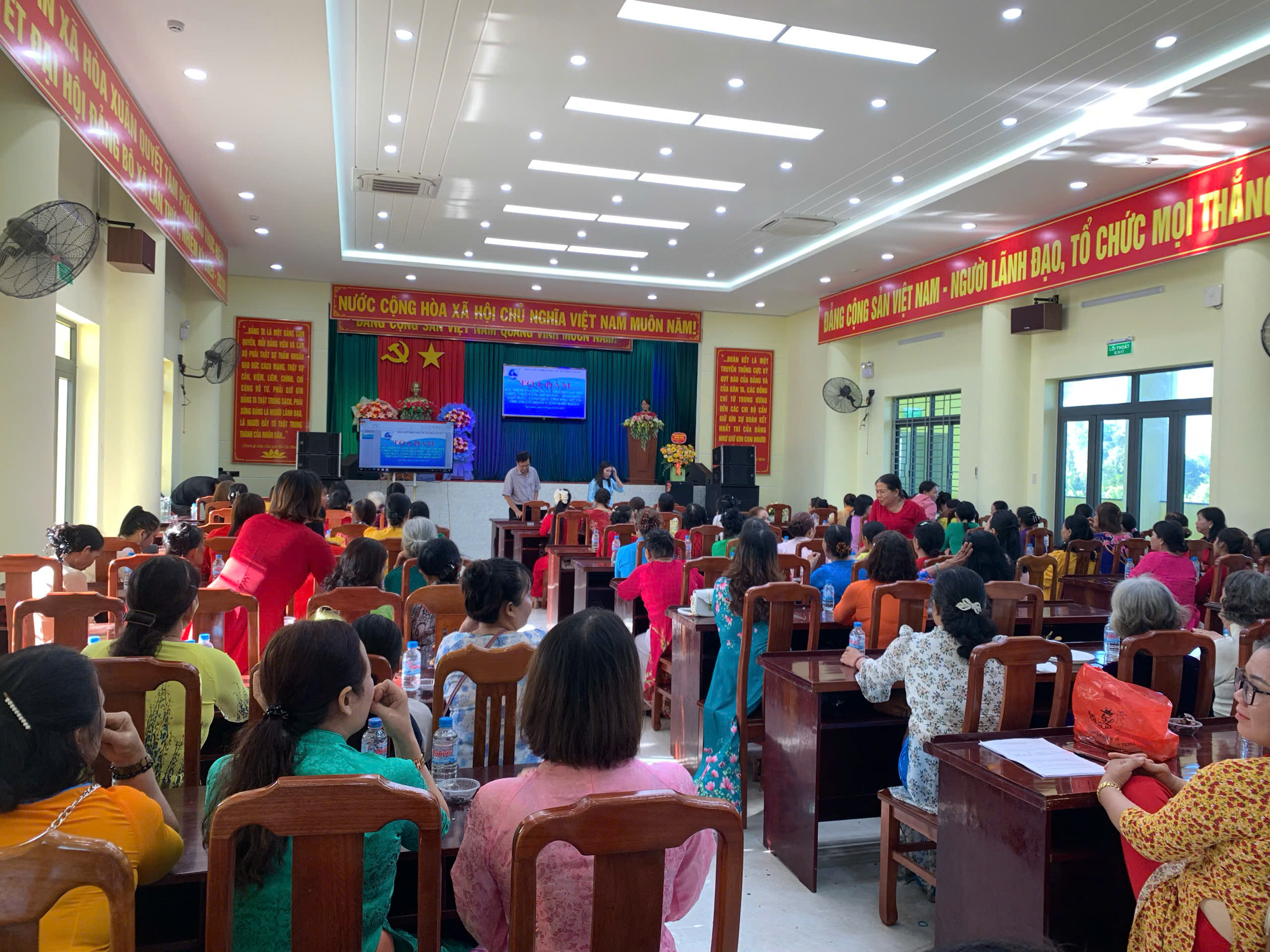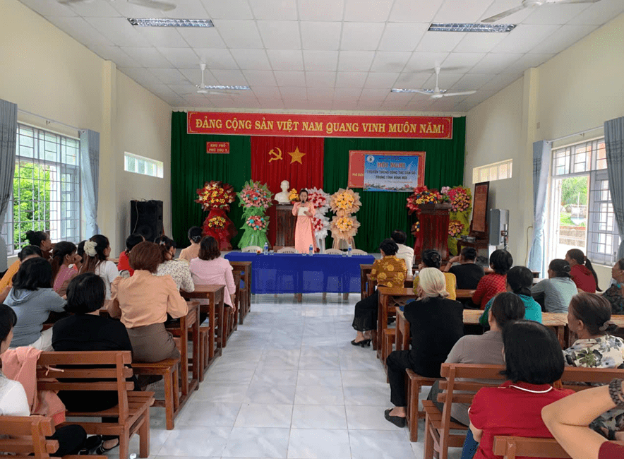 Đối tượng tham dự là hội viên, phụ nữ trong độ tuổi sinh đẻ tại các xã, phường cùng sự tham gia của báo cáo viên Trung tâm Y tế Đông Hòa.