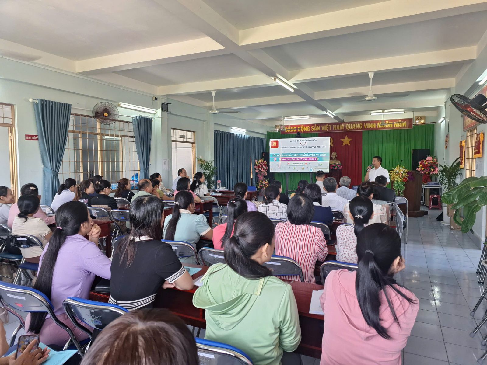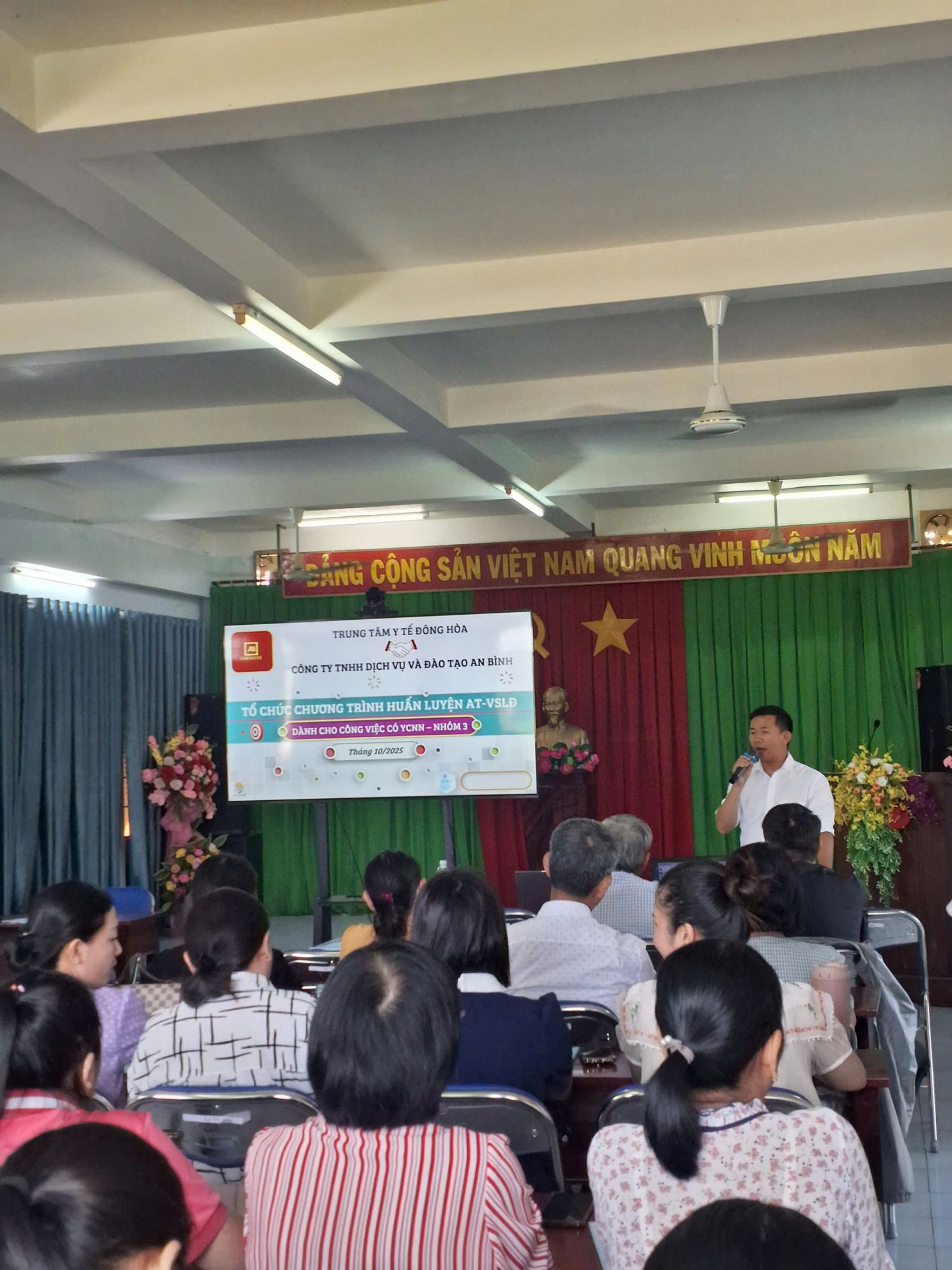 TRUNG TÂM Y TẾ ĐÔNG HÒA TỔ CHỨC CHƯƠNG TRÌNH HUẤN LUYỆN AT-VSLĐ Ngày đăng: 24/10/2025 - 08:44 Chia sẻ: | In bài viết