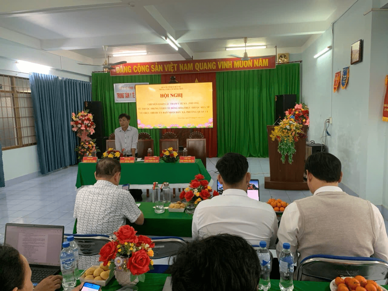 Cuộc họp diễn ra vào lúc 14 giờ 00 phút, ngày 05/01/2026 tại Hội trường Trung tâm Y tế Đông Hòa, với sự tham dự của Đảng ủy Trung tâm, Ban lãnh đạo Trung tâm Y tế; đại diện các phòng chuyên môn gồm Phòng Tổ chức – Hành chính, Phòng Tài chính – Kế toán, Phòng Kế hoạch – Nghiệp vụ – Điều dưỡng, Khoa Dược – Trang thiết bị – Vật tư y tế, Phòng Dân số – Truyền thông – Giáo dục sức khỏe & Y tế cơ sở; cùng đại diện lãnh đạo các Trạm Y tế trực thuộc Trung tâm Y tế Đông Hòa.