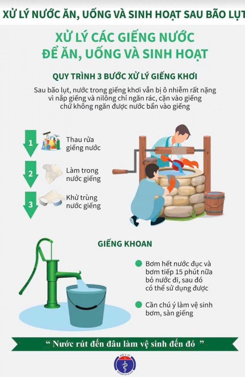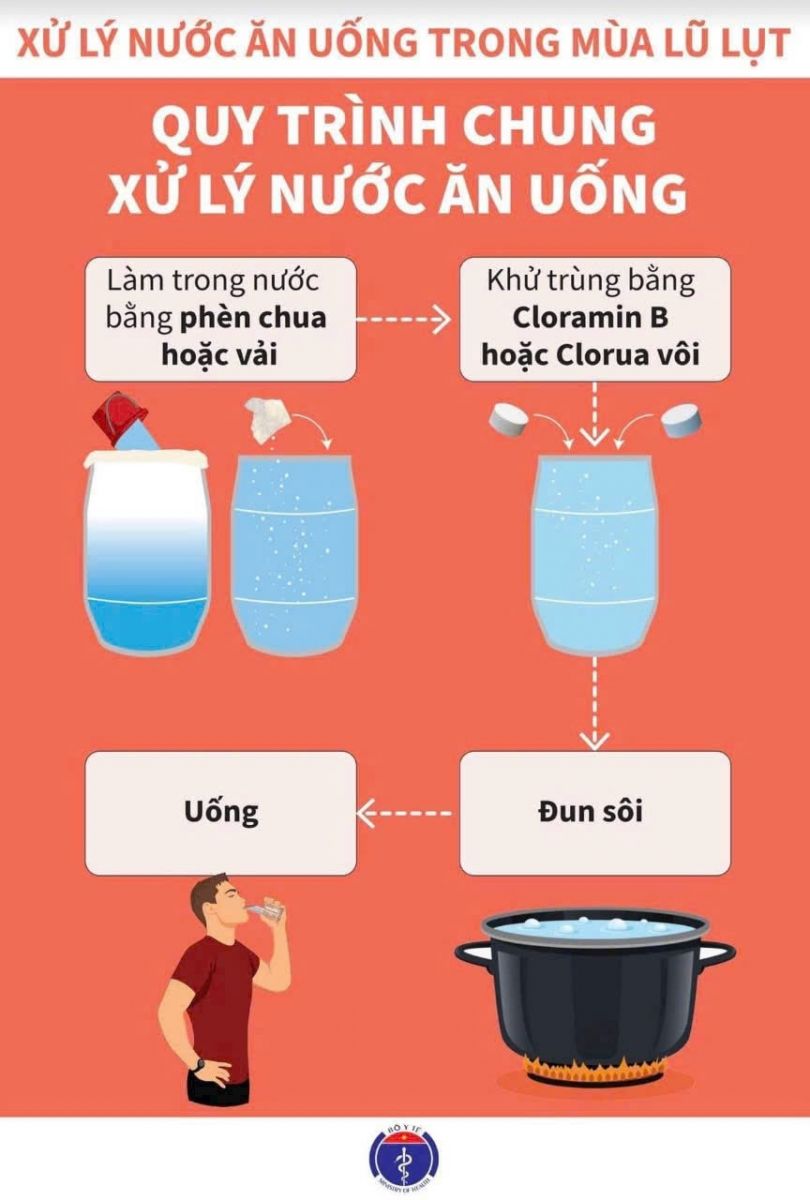 “Nước sạch – Sức khỏe an toàn. Chủ động xử lý nước sau lũ để phòng ngừa dịch bệnh.”